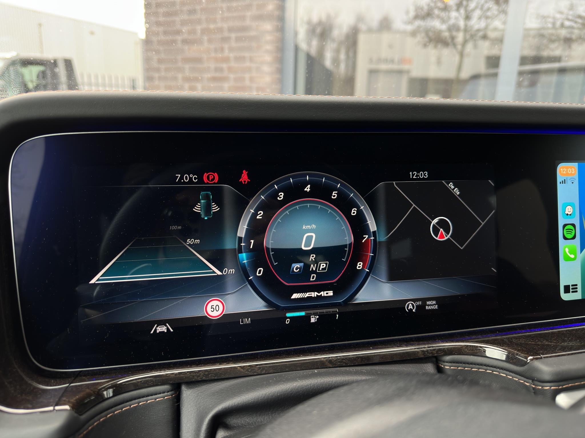 Ambienteverlichting (uitgebreide omvang) FR2 Adaptieve demping A20 Bureaufunctie in Voertuig 02U Burmester 3D surround sound system EU8 Camerasysteem 360 Graden JS1 Chassisdempingssysteem met Keuzestappen (Comfort + Sport) A20 Combi-instrument met Variabele Weergave (Widescreen Cockpit) J25 Diefstalbeveiligingspakket Diefstalalarmsysteem + Interieurbeveiliging / Sleepbeveiliging P54 DISTRONIC PLUS, Adaptieve cruise control EZ9 Active Lane Keeping Assist A53 Designo hemelbekleding in DINAMICA alcantara, zwart FH2 G manufaktur Interieur Plus GM2 Interieurinrichting: Edelhout Es, bruin VA3 Lichtmetalen velgen 10x22 (AMG, Kruisspaken, matzwart) RG4 Night-pakket NP1 Night-pakket II Logo's zwart PAZ Designo Metallic-lak Olive 255U Remzadels Rood gespoten BS2 Stoelbekleding/kussens: Leer Nappa, 2- kleuren met A-Band Sattel bruin 914A Stuur verwarmbaar LH1 Voorruit verwarmbaar F49 Schuifdak elektrisch F15 Sport-uitlaatsysteem (AMG-performance) U78 Surround-systeem Burmester EU8 Technologie-pakket • Parkeer-pakket met 360° Camera • Rijassistent-pakket • Buitenspiegel met Dode hoek-assistent • Cruisecontrol met Afstandsregeling /Distronic Plus • Parktronic-systeem PTS (voor en achter)