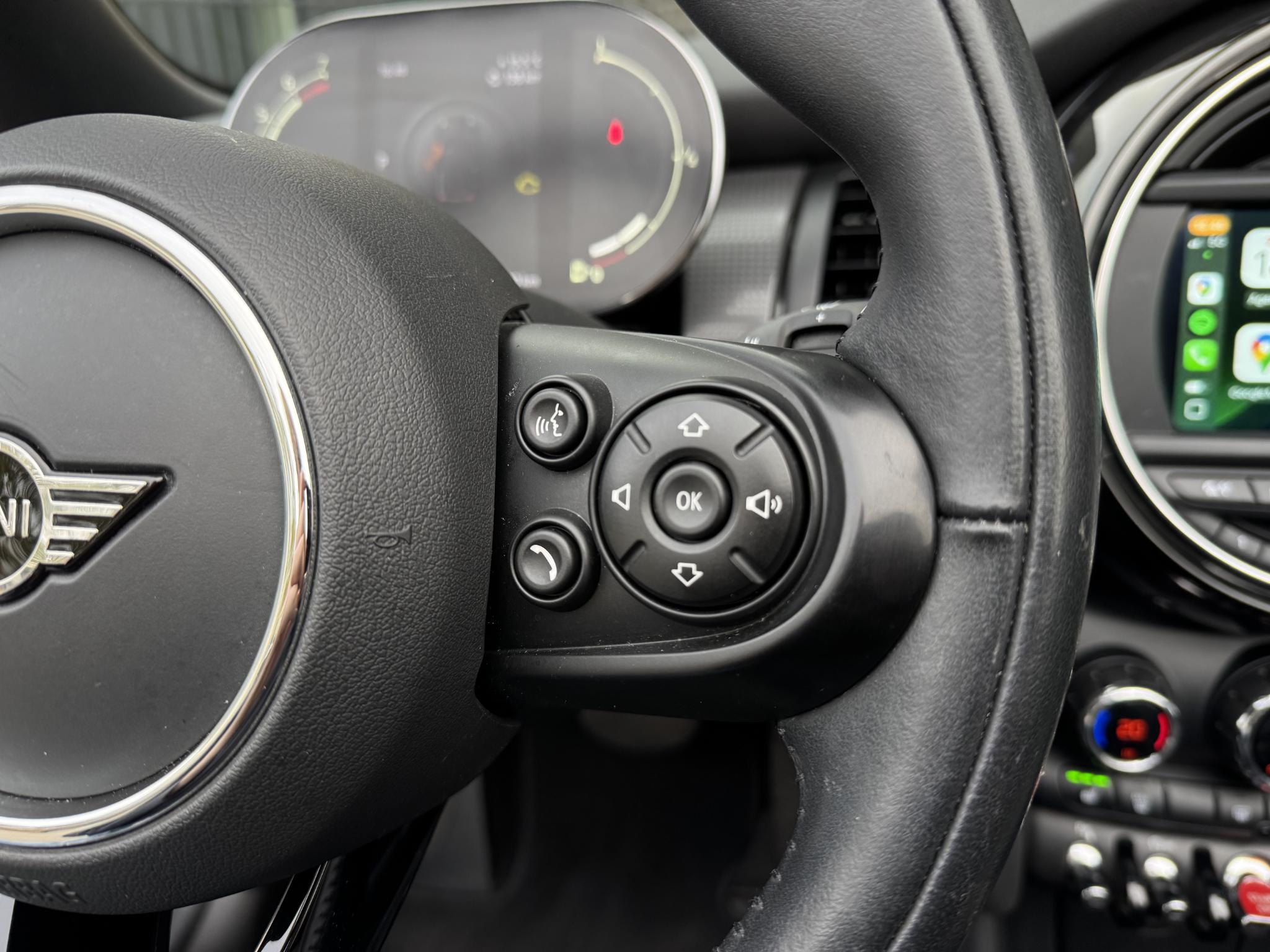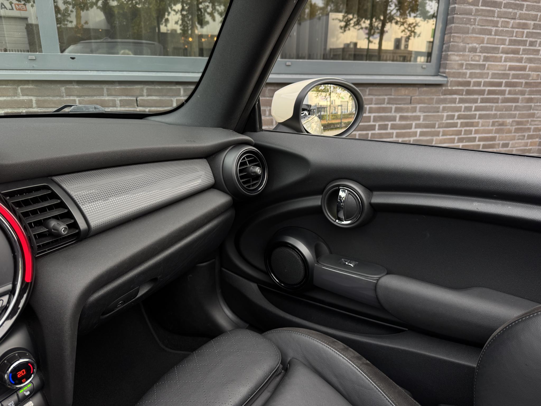Multifunctie voor Stuur 249 Lichtmetalen velgen 7x17 (Cosmos Spoke, Zilver) 2F1 Windscherm (Cabrio) 387 Achteruitrijcamera 3AG Binnenspiegel met dimautomaat 431 Armleuning voor 473 Sportstoelen voor 481 Stoelverwarming voor 494 Interieurinrichting: Color-Line 4C1 MINI Driving Modes 4VA Park-Distance-Control (PDC) voor en achter 508 Mistlamp LED 5A1 Koplamp LED • Knipperlichten Wit • Achterlichten LED 5A2 Rijassistent-systeem Parkeerhulp 5DP DAB-Tuner (Radio-ontvangst digitaal) 654 Audiosysteem MINI Visual Boost (incl. LCdisplay) Handsfree-installatie Bluetooth met USB-Audio-interface • • MINI Connected (Interface) 6FP Audio-navigatiesysteem 6UM Uitrustingspakket: Pepper • Licht-pakket • Ambienteverlichting • Leeslampen voor • Excitement-pakket • Centraal-instrument met LED-Ring • Opbergruimte-pakket • Laadruimtevloer variabel • Aansluiting (12V-aansluiting) extra • Mistlamp • Licht- en regensensor • Boordcomputer • Vloermatten Velours • Automatische airconditioning • Stoel voor rechts hoogteverstelbaar • Lichtmetalen velgen • Stuur (Sport/leder) 7Y1 Stoelbekleding/kussens: Leer Cross Punch NEE1