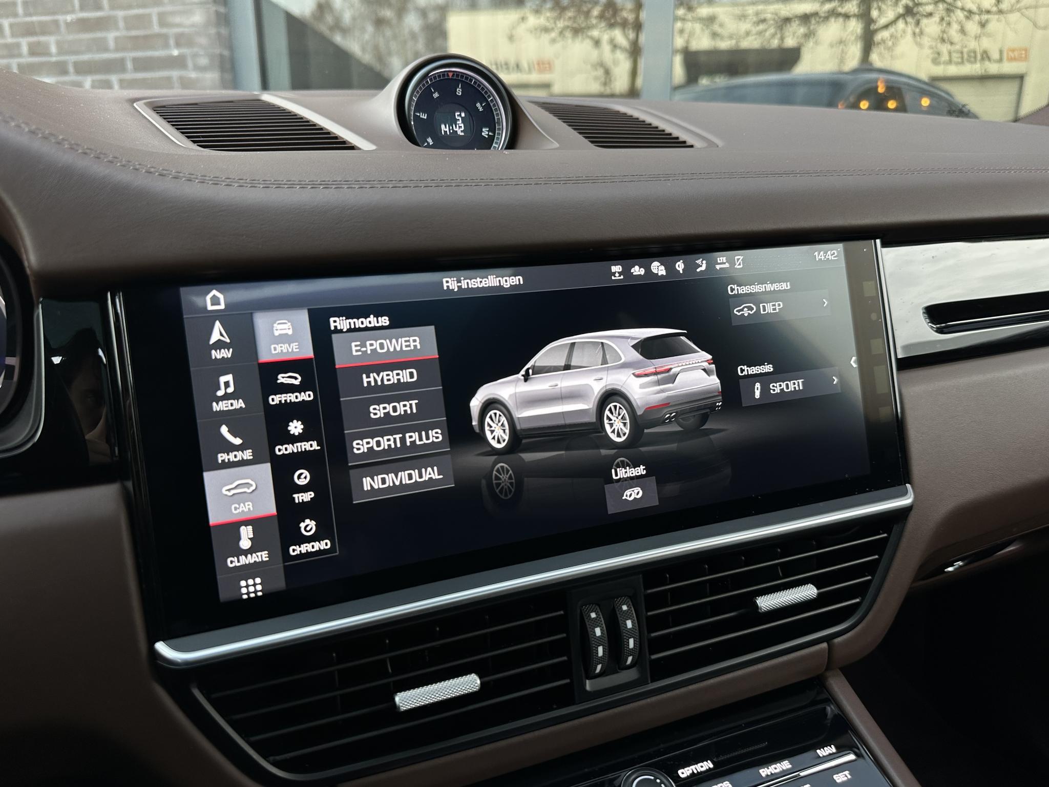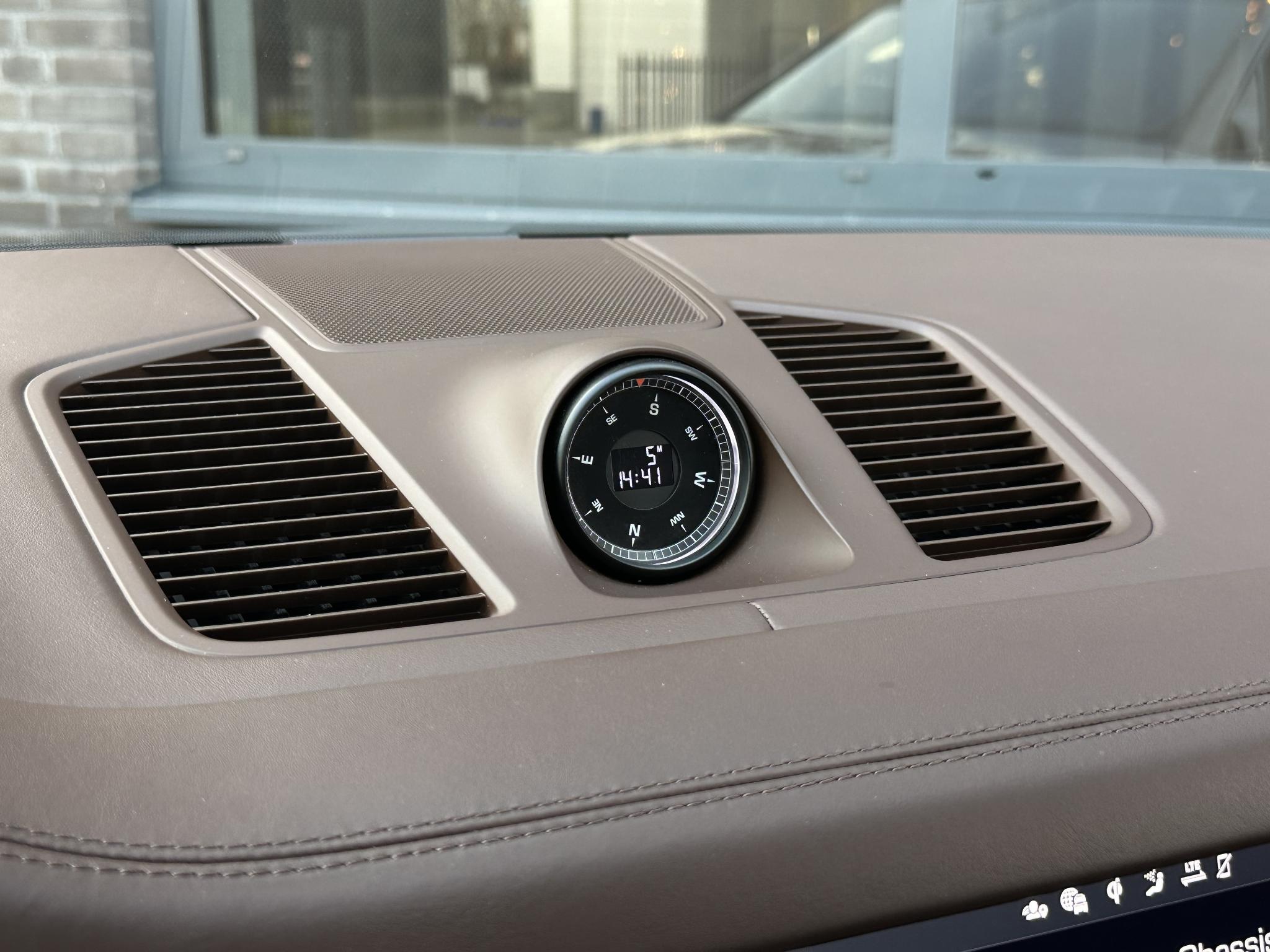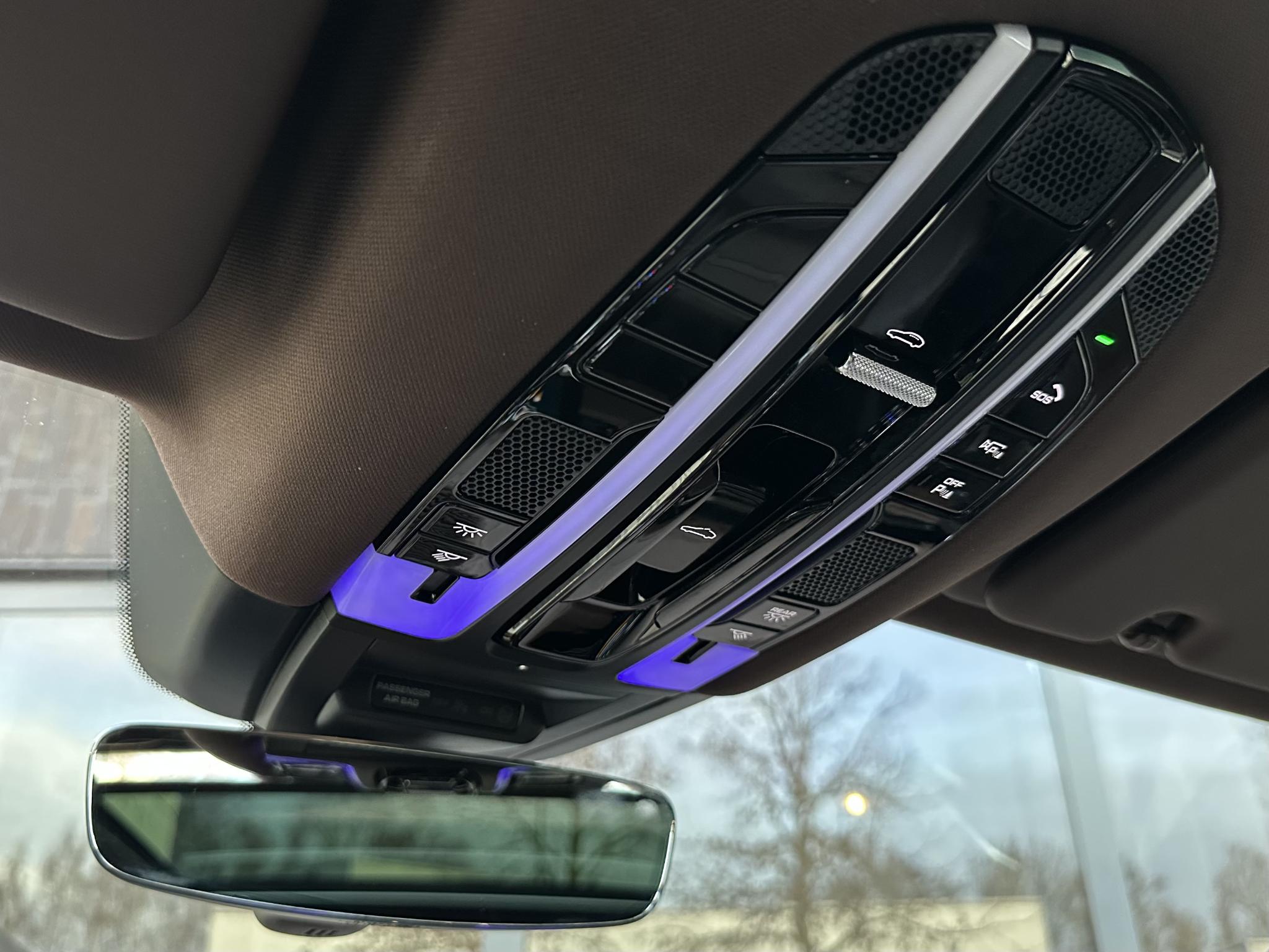 Metallic-lak Vierwielbesturing 0N5 Vloermatten 0TD Luchtvering elektronisch gereglementeerd Porsche Active Suspension Management (PASM) Wielnaaf - Afdekkingen Porsche-embleemgekleurd 1NP Ionisator voor de luchtreiniging 2V4 Stuur verwarmbaar (Extra-AV naar Stuur) 2ZH Panoramisch zonnedak tweedelig voor elektrisch 3FU Bagage-/laadruimtemanagement-systeem 3GN Dakreling met Daklijsten, Aluminium-look 3S1 Stoelverwarming voor + achter 4A4 Interieurinrichting: Clubleer, Walknappa 4AA Stoelen voor met massage- enventilatiefunctie 4D5 Buiten-/binnenspiegel met Dimautomaat 4L6 Zij-airbag achter 4X4 Laadkabel met Industriële stekker (16 A /400 V) 73J Laadkabel 4,5 m 76C Rijassistent-systeem Rijstrookwisselassistent 7Y1 Matrix-LED-koplamp incl. Porsche DynamicLight Systeem Plus (PDLS+) 8IU Automatische airconditioning 4 zones 9AE Sound-systeem BOSE 9VL Soft Close Portieren GZ2 Parkeerhulp voor enachter incl. Achteruitrijcamera en SurroundView KA6 Laadsysteem On-Board oplader (tot 7,2 kW) KB2 Head-up-display KS1 Rijassistent-systeem Porsche InnoDrive incl.Adaptieve cruisecontrol PY2 Comfort-stoelen voor incl. Stoelverstelling14-wegs en Memory-pakket Bestuurder-geheugen-pakket Q2J Ambienteverlichting QQ1 Radio-ontvangst digitaal (DAB+) QV3 Stuurbekrachtiging Plus(snelheidsafhankelijk) QZ7 Beglazing achter verduisterd (Privacybeglazing) incl. Warmtewerend glas geluidsisolerend VW6