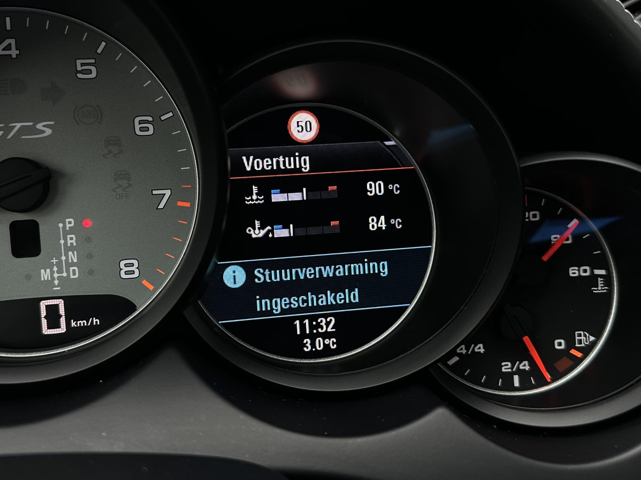 Metallic-lak Brandstoftank: 100 L 0M1 Vloermatten 0TD Luchtvering elektronisch gereglementeerd Porsche Active Suspension Management(PASM) Niveauregulering 1BK Stuurbekrachtiging Plus (snelheidsafhankelijk) 1N3 Wielnaaf - Afdekkingen Porsche-embleemgekleurd 1NP Porsche Torque Vectoring Plus (PTV Plus) 1Y1 Stuur verwarmbaar (Sport / Alcantara, 3-spaaks) met Schakelfunctie 2ZF Panoramisch zonnedak elektrisch (4Glassegmenten) 3FU Bestuurder-geheugen-pakket 3L4 Stoelverwarming voor 4A3 Beglazing achter verduisterd (Privacybeglazing) 4KF Zij-airbag achter 4X4 Interieur-pakket: Carbon 5MH Wielkastverbredingen 6GK Bandenspanningscontrolesysteem 7K3 Rijassistent-systeem Parkeerhulp met Achteruitrijcamera Rijassistent-systeem Parkeerhulp 7X8 Hoofdkoplamp LED incl. Porsche Dynamic Light Systeem Plus (PDLS+) 8EX Rijassistent-systeem Snelheidslimietindicator 9Q6 Sound-systeem BOSE 9VL Soft Close Portieren GZ2 Connect Plus (Bluetooth, Apple CarPlay, WLAN, Vehicle-Tracking-System) Telefoonmodule voor Porsche Communications Management (PCM) WLAN-Hotspot Voorbereiding Mobiele telefoon/gsm met Bluetooth-interface Multimedia Smartphone Applications (Onlineservice / Apps) Porsche Car Connect IV1 Interieur-pakket: GTS MF Buiten-/binnenspiegel met Dimautomaat PA2 Licht-comfort-pakket PP6 Exterieur-extra-pakket zwart gespoten(Hoogglans) PX2
