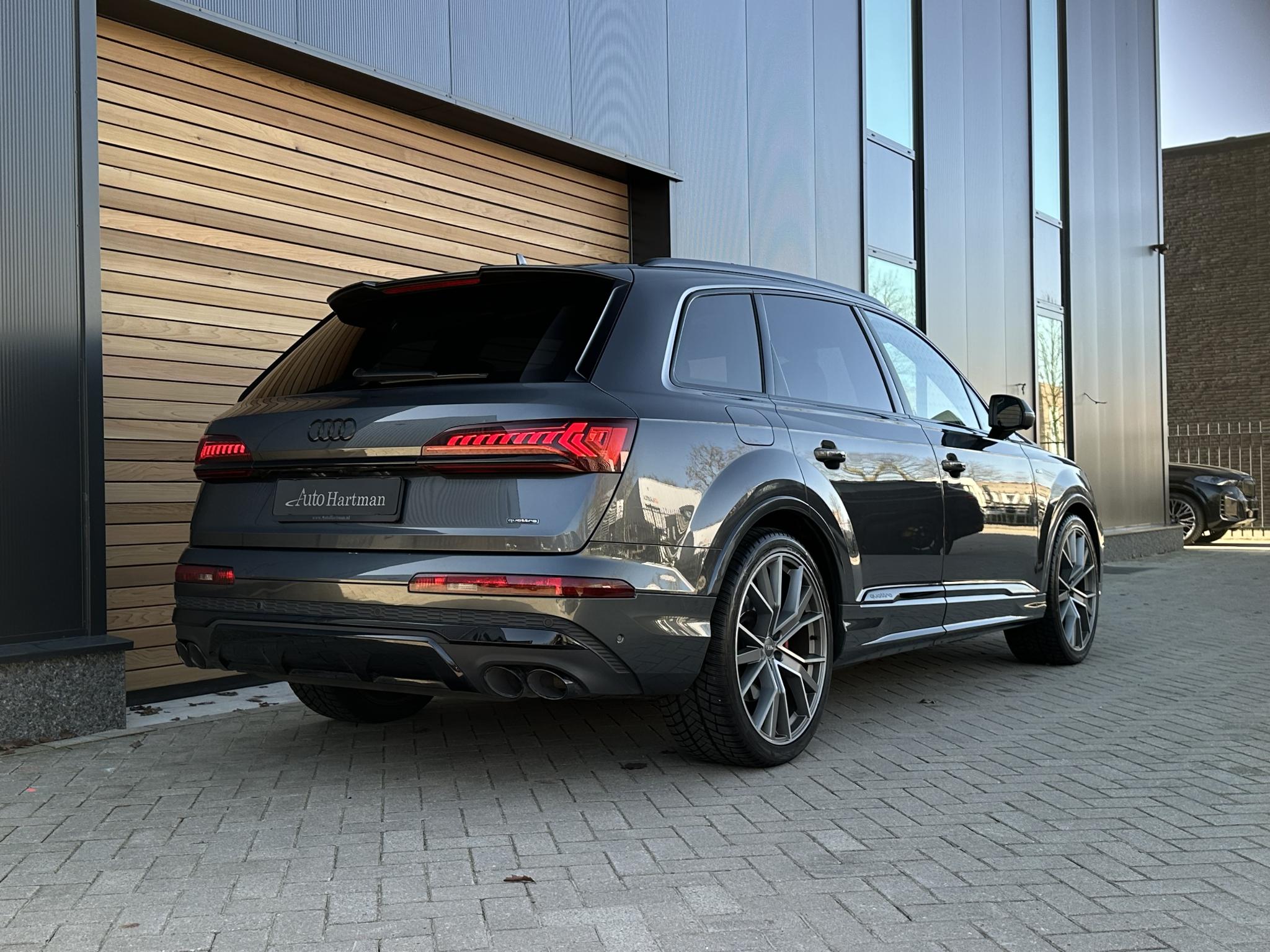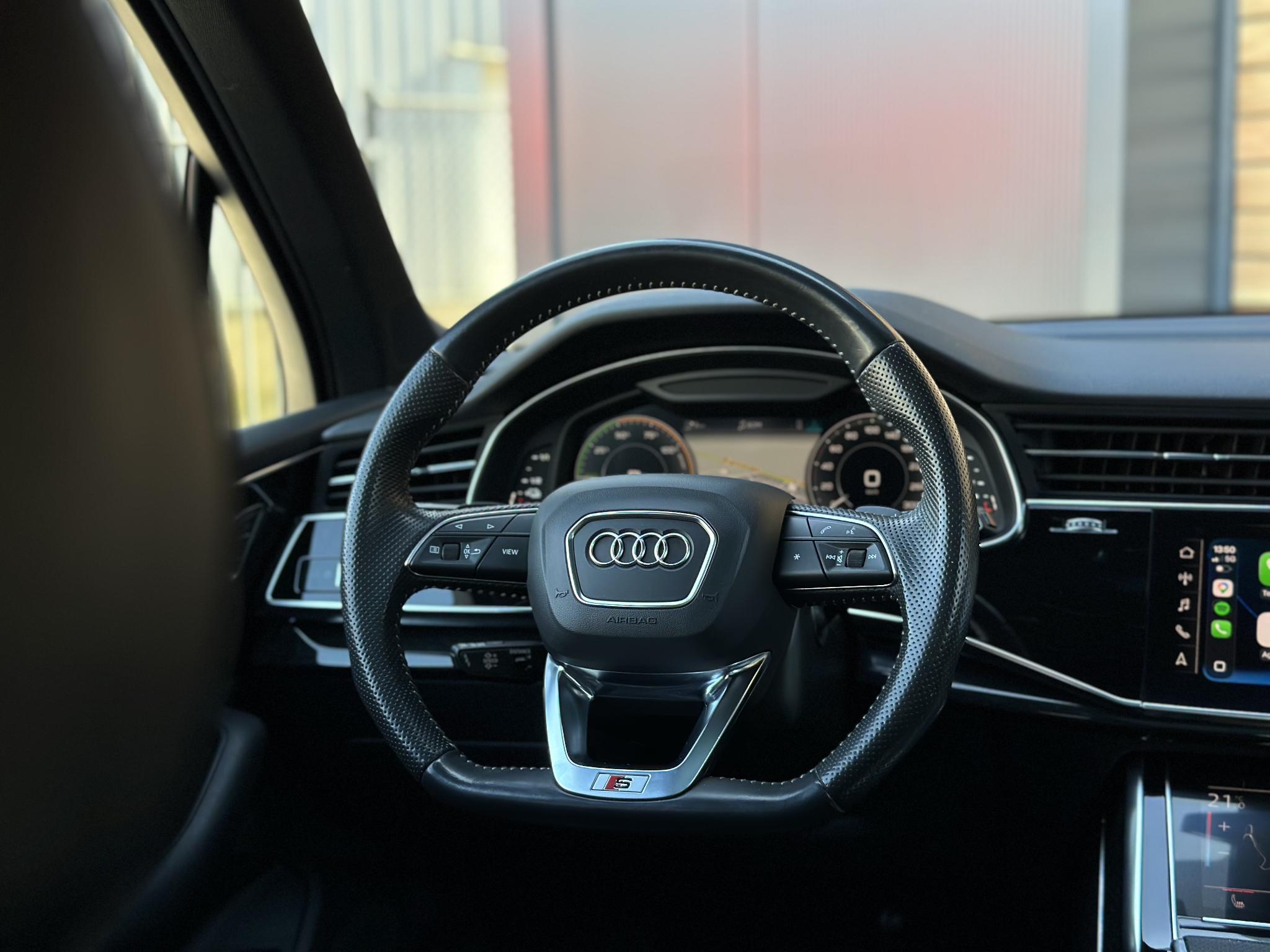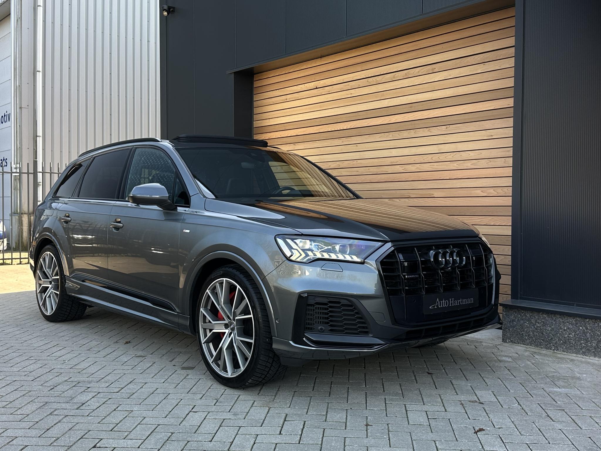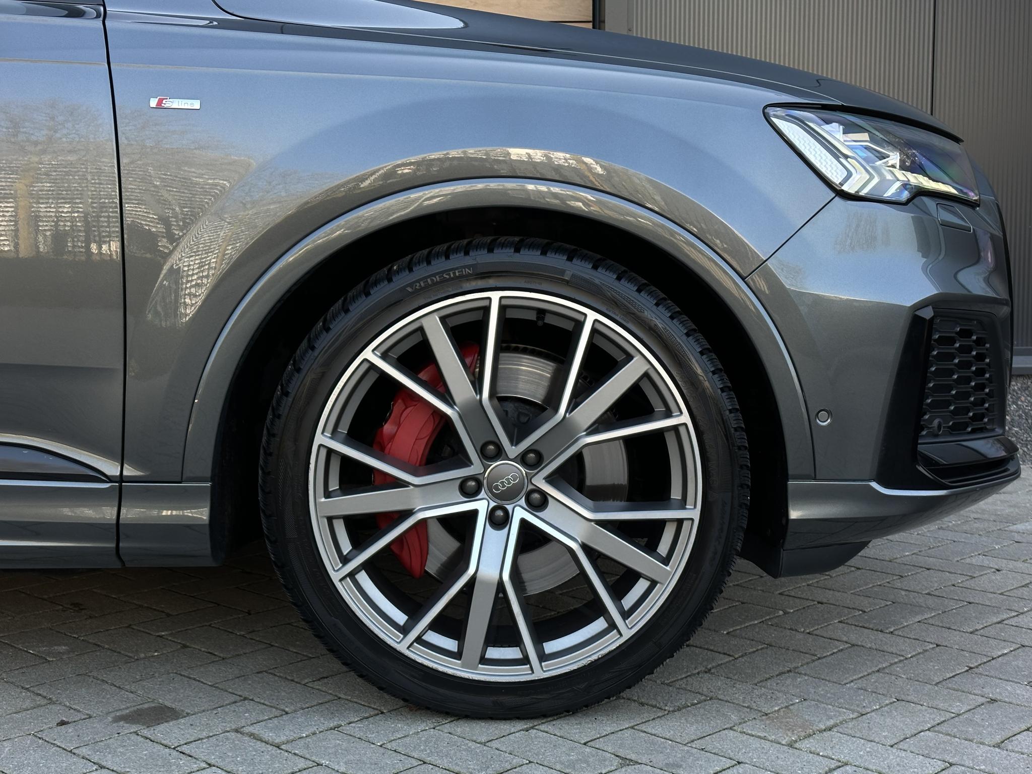 Chassis (adaptive air suspension) 1BK Trekhaak (kogelkop elektrisch zwenkbaar) 1D3 Diefstalbeveiliging voor Wielen (Velgsloten) 1PR Sperdifferentieel 1Y6 Stuurkolom (Stuur) electr. verstelbaar 2C7 Stuur (Sport/leder - 3-spaaks, afgeplat aande onderzijde) met Multifunctie en Schakelfunctie 2PF Panoramadak voor elektrisch, achter vast 3FU Isofix-houder voor Kinderzitje aan Passagiersstoel 3G4 Bevestigingsset voor Railsysteem in Bagageruimte 3GN Stoelen voor electr. verstelbaar (links metMemory) 3L4 Stoelverwarming voor en achter 4A4 Sluit-/startsysteem Advanced Key (Comfortsleutel) Bagage-/laadruimteafdekking elektrisch Laadrandbescherming (Roestvrij staal) Diefstalalarmsysteem +Interieurbeveiliging / Sleepbeveiliging 4I3 Zij-airbag achter 4X4 Achterbank (2. Serie) verschuifbaar (plus) 5KA Hoofdsteunen variabel verstelbaar 5ZC Middenarmsteun voor Comfort-uitrusting 6E6 Buitenspiegel electr. verstelbaar, verwarmbaar en inklapbaar, met Dimautomaat en Memory Buitenspiegel met Stoeprandfunctie, rechts6XL Parelmoereffect-lak 6Y6Y Bandenspanningscontrolesysteem 7K3 Interieurinrichting: Decordelen Hout Eikgrijs 7TM Sound-systeem BOSE 9VS Rear Seat Entertainment RSE (Voorbereiding) 9WQ Bluetooth-handsfree-installatie metS praakherkenning (Audi Phone Box) 9ZE Lichtmetalen velgen 9x20 (5-parallelspaaksdesign) F08 Audi Smartphone Interface IU1 Head-up-display KS1 Hulppakket Tour PCC Hulppakket Stad - Rijassistent-systeem 360 graden rondombescherming (Audi pre sense360°) - Rijassistent-systeem Kruising-assistent - Rijassistent-systeem Uitstap waarschuwing - Rijassistent-systeem Dwarsverkeer assistent Achterkant - Rijassistent-systeem Rijstrookwisselassistent (Side Assist) incl. Audi presense rear PCM Comfort-sleutel met sensorgestuurde Achterklepontgrendeling incl. (openen +sluiten) Laadrandbescherming (Roestvrij staal) Bagage-/laadruimteafdekking elektrisch PGC Matrix-LED-koplamp met Laserverlichting PXB Beglazing achter verduisterd (Privacybeglazing) QL5 Kontur / Ambienteverlichtings-pakket (plus) QQ2 Radio-ontvangst digitaal (DAB) QV3 Audi music interface op de achterbank UF8 Akoestisch glas Portierruiten aan de zijkant VW0 Uitrustingspakket: S line Sport / Plus instaplijsten met Aluminiuminzetstuk en Handtekening, verlicht Laadrandbescherming (Roestvrij staal) Interieurinrichting: Decordelen Aluminium Mat Dakbekleding Stof, zwart Vloermatten Audi exclusive Sportstoelen voor Stoelen voor electr. verstelbaar Lendensteun voor, electr. verstelbaar Schakel-/selectie hefboomgreep Leer (geperforeerd) Stuur (Sport/leder - 3-spaaks) met Multifunctie en Schakelfunctie WQS