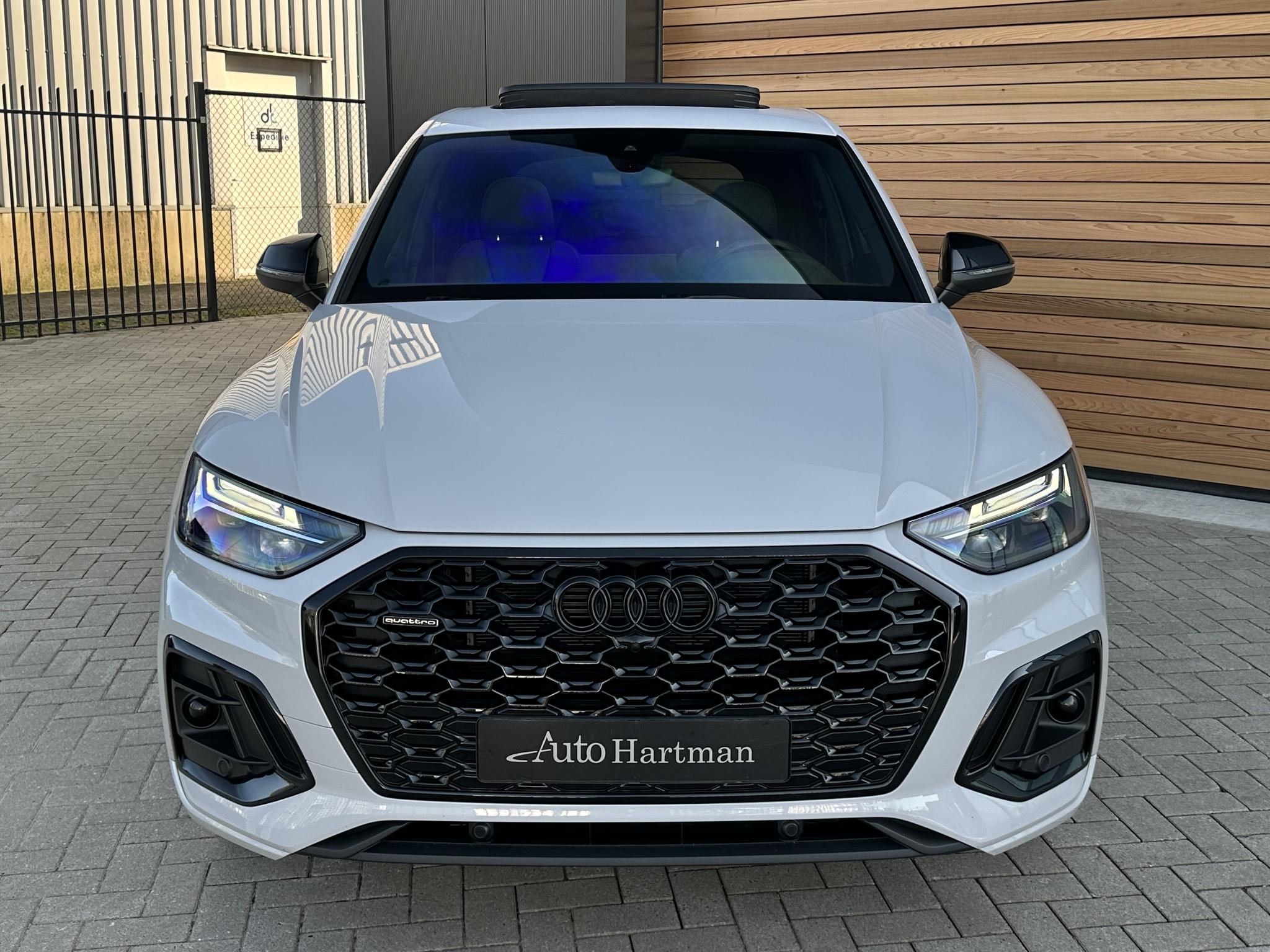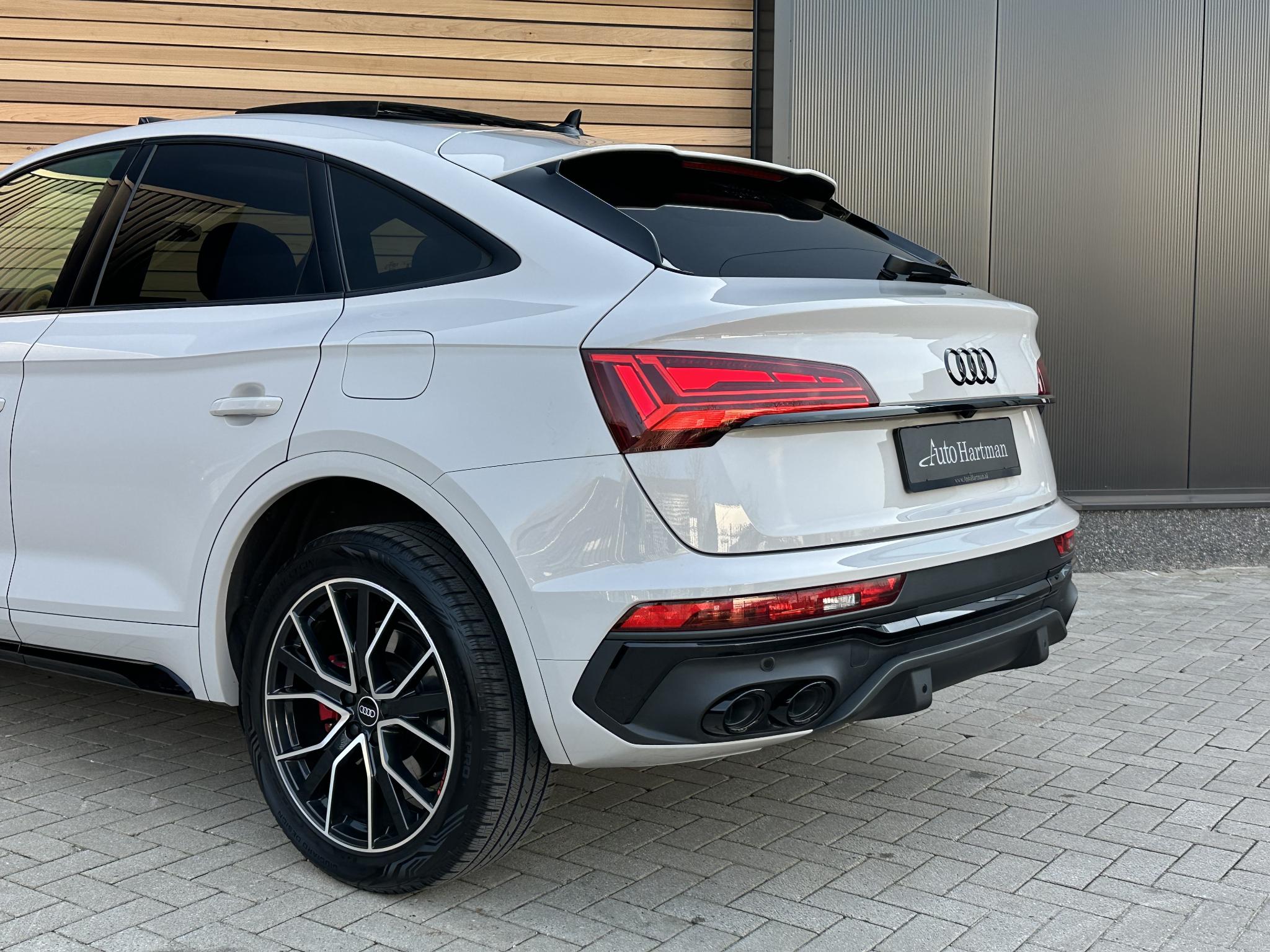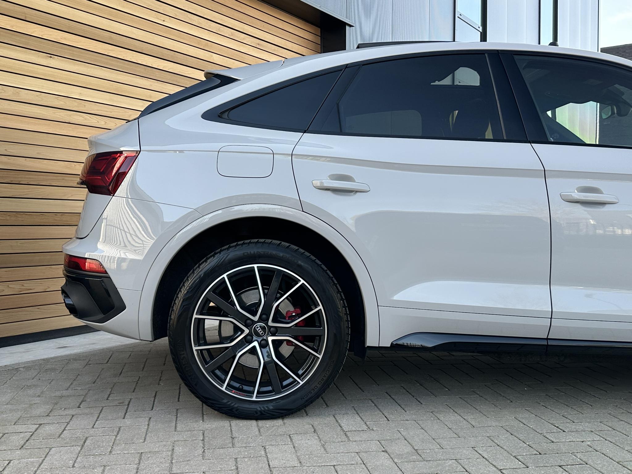 Achteruitrijcamera KA2 Audi connect (Op internet gebaseerde diensten) IT3 Beglazing achter verduisterd (Privacybeglazing) QL5 Combi-instrument digitaal (virtual cockpit) 9S8 Interieur-pakket S line Instaplijsten met Aluminiuminzetstuk en Handtekening, verlicht Interieurinrichting: Decordelen Aluminium Mat Interieurinrichting: Decordelen Accentdelen Zwart glimmend Dakbekleding Stof, zwart Vloermatten Velours Stoelbekleding/kussens: Leer / Stof Sequenz met Logo-afdruk in Voorstoelleuningen Sportstoelen voor Stuur (Leer - 3-spaaks) met Multifunctie plus en Schakelfunctie WQS Kontur / Ambienteverlichtings-pakket (plus) QQ2 Lichtmetalen velgen 7x17 (10-spaaks, voor Winterbanden) 2WB Lichtmetalen velgen 8x20 (5-V-spaaks-sterdesign, Antraciet-Zwart, glansgedraaid) 54U Metallic-lak 0E0E Multimedia-interface MMI Navigation Plus met MMI Touch 7UG Optiek-pakket Zwart plus 4ZP Panoramadak voor elektrisch, achter vast 3FU Parkeerhulp voor en achter, optisch (APS Plus) 7X2 Remzadels Rood gespoten PC2 Sound-systeem DSP / Audi Sound-systeem 9VD Stoelverwarming voor 4A3 Stuur (Sport/leder - 3-spaaks, afgeplat aan de onderzijde) met Multifunctie plus 2PF Trekhaak (kogelkop zwenkbaar) 1D4