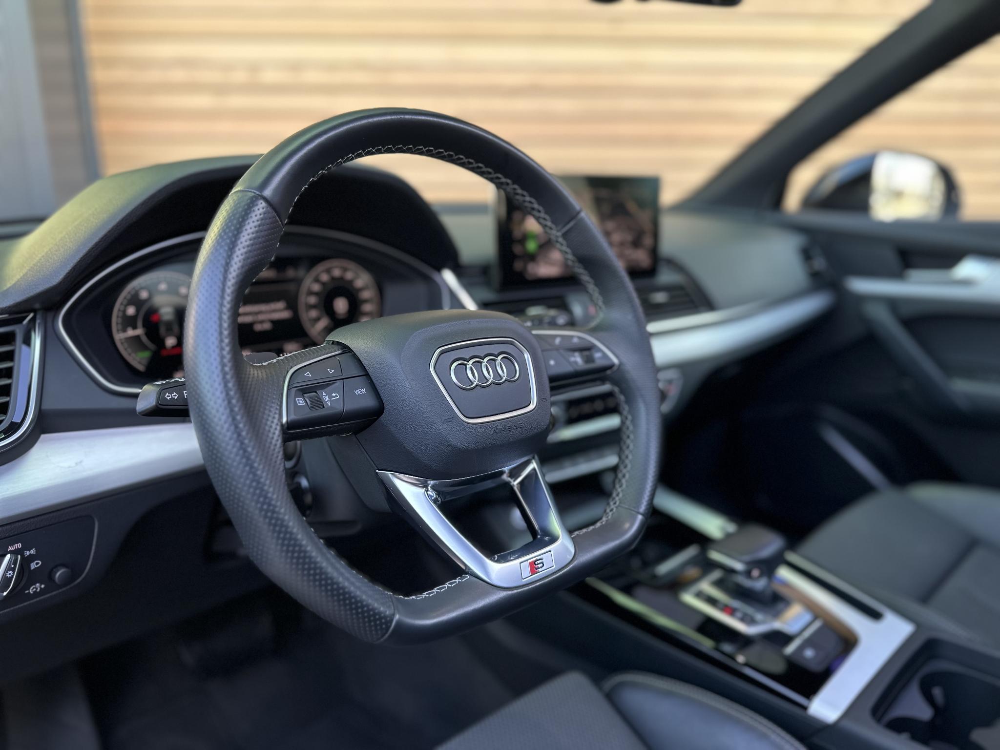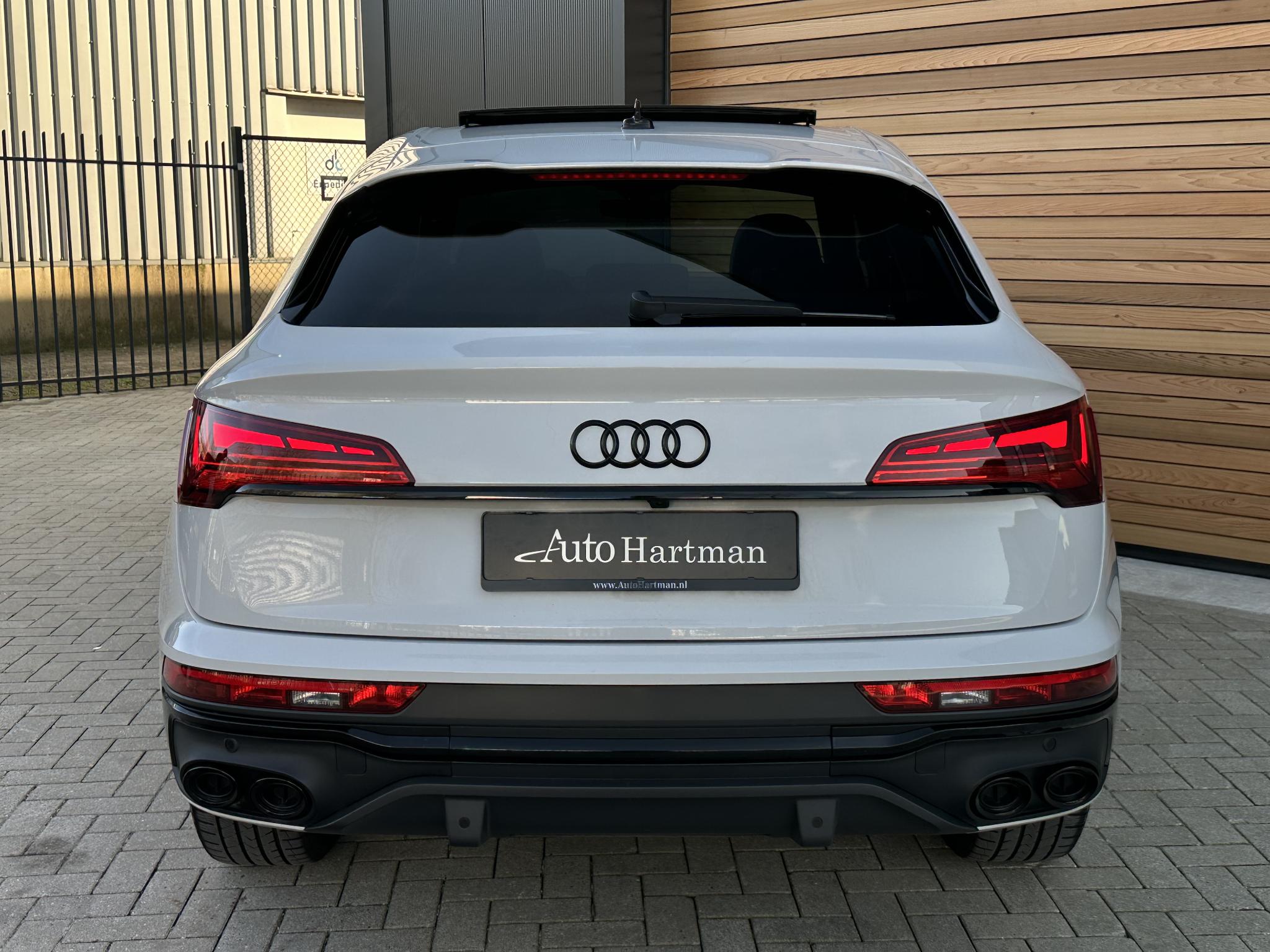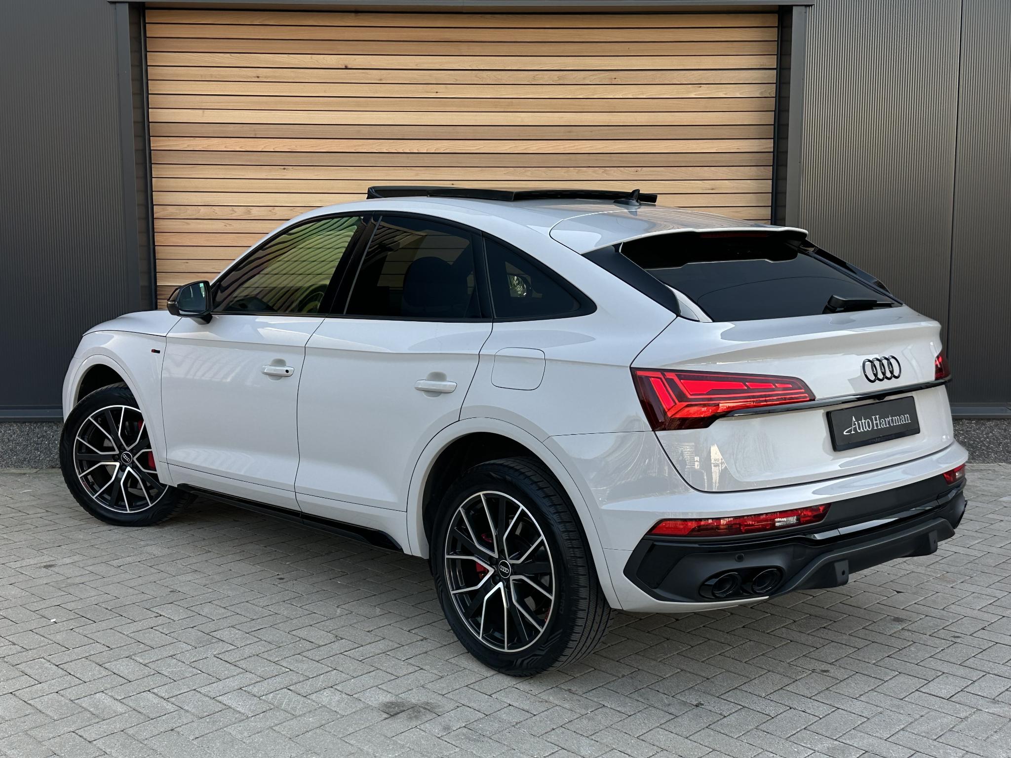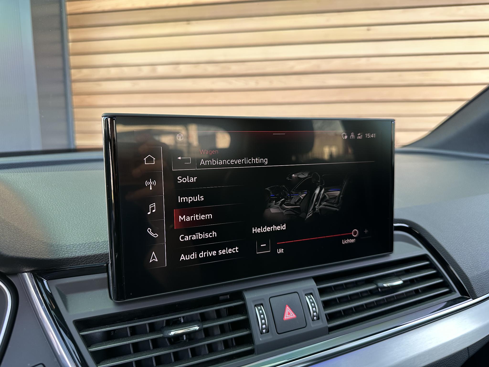 Achteruitrijcamera KA2 Audi connect (Op internet gebaseerde diensten) IT3 Beglazing achter verduisterd (Privacybeglazing) QL5 Combi-instrument digitaal (virtual cockpit) 9S8 Interieur-pakket S line Instaplijsten met Aluminiuminzetstuk en Handtekening, verlicht Interieurinrichting: Decordelen Aluminium Mat Interieurinrichting: Decordelen Accentdelen Zwart glimmend Dakbekleding Stof, zwart Vloermatten Velours Stoelbekleding/kussens: Leer / Stof Sequenz met Logo-afdruk in Voorstoelleuningen Sportstoelen voor Stuur (Leer - 3-spaaks) met Multifunctie plus en Schakelfunctie WQS Kontur / Ambienteverlichtings-pakket (plus) QQ2 Lichtmetalen velgen 7x17 (10-spaaks, voor Winterbanden) 2WB Lichtmetalen velgen 8x20 (5-V-spaaks-sterdesign, Antraciet-Zwart, glansgedraaid) 54U Metallic-lak 0E0E Multimedia-interface MMI Navigation Plus met MMI Touch 7UG Optiek-pakket Zwart plus 4ZP Panoramadak voor elektrisch, achter vast 3FU Parkeerhulp voor en achter, optisch (APS Plus) 7X2 Remzadels Rood gespoten PC2 Sound-systeem DSP / Audi Sound-systeem 9VD Stoelverwarming voor 4A3 Stuur (Sport/leder - 3-spaaks, afgeplat aan de onderzijde) met Multifunctie plus 2PF Trekhaak (kogelkop zwenkbaar) 1D4